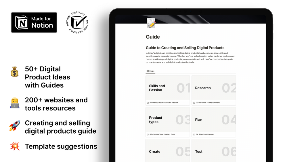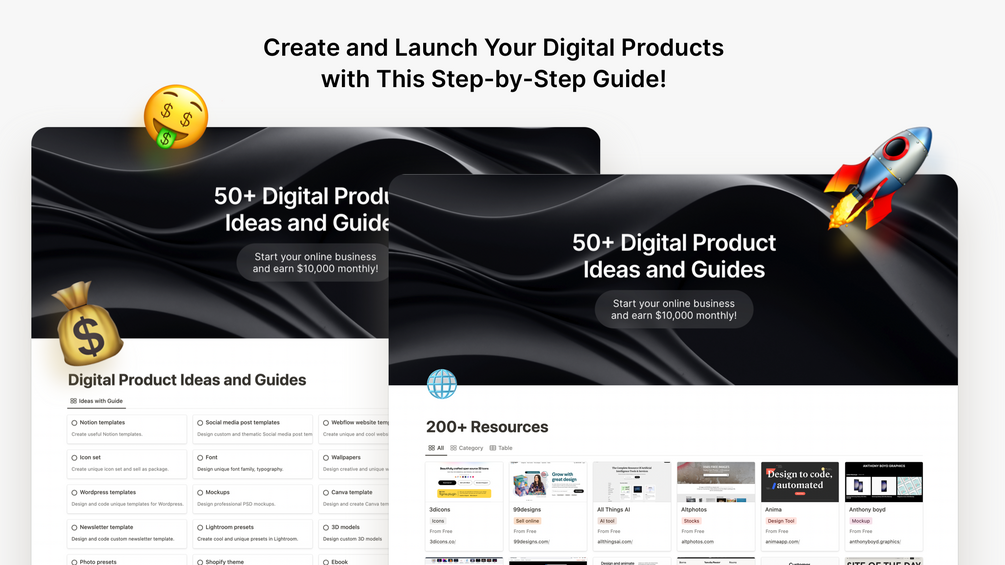 Explore 50 digital product ideas, along with step-by-step guides and template suggestions to help you transition from a 9-5 job to becoming a full-time digital product creator.