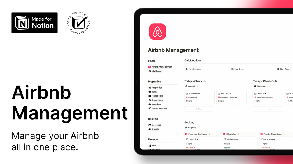 Manage your Airbnb operations seamlessly with Notion - all in one place.