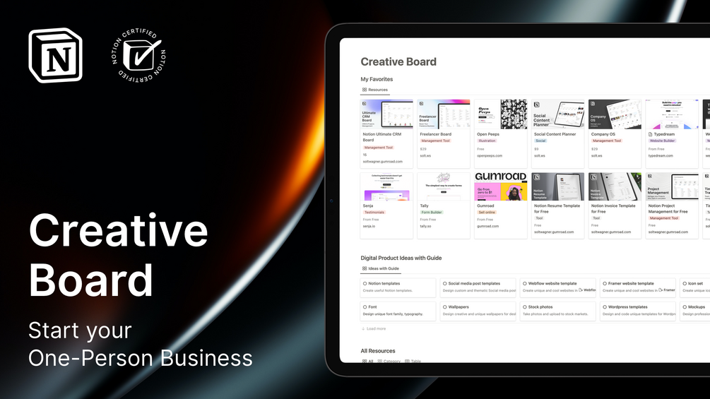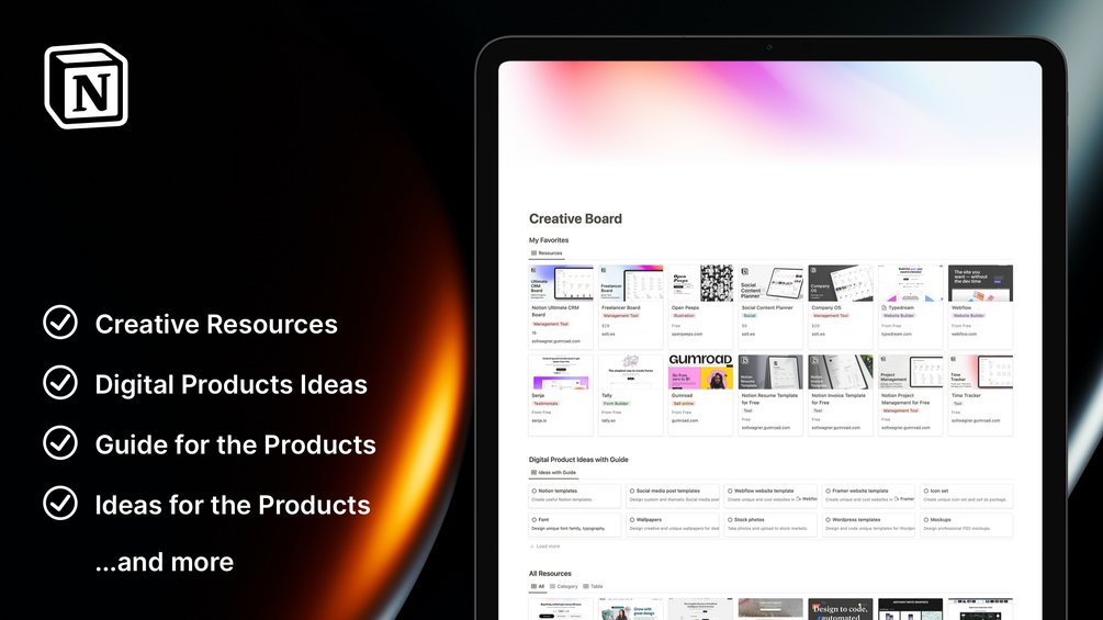 Creative Board, +200 Resources, 50 Product Ideas with Guide