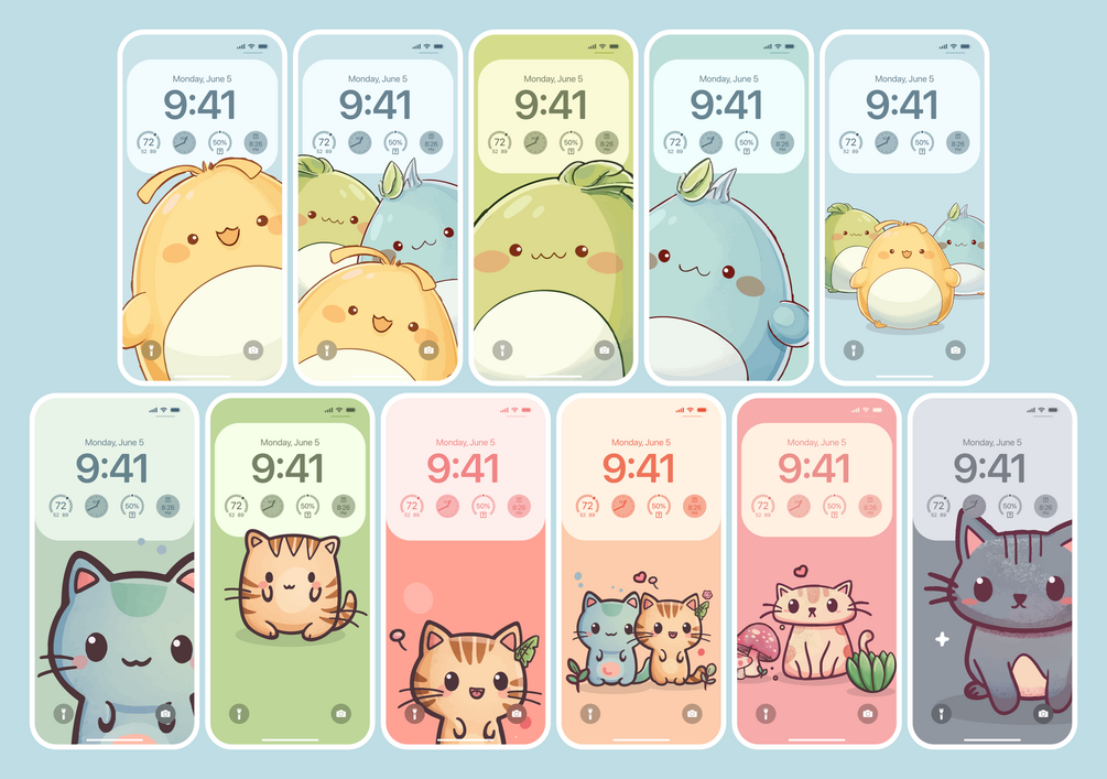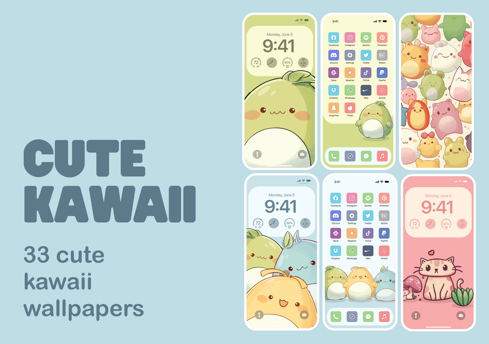 Enjoy 33 adorable, high-resolution wallpapers designed in an aesthetic kawaii style for your mobile devices. This pack includes both lock screen and home screen options to brighten up your screens.