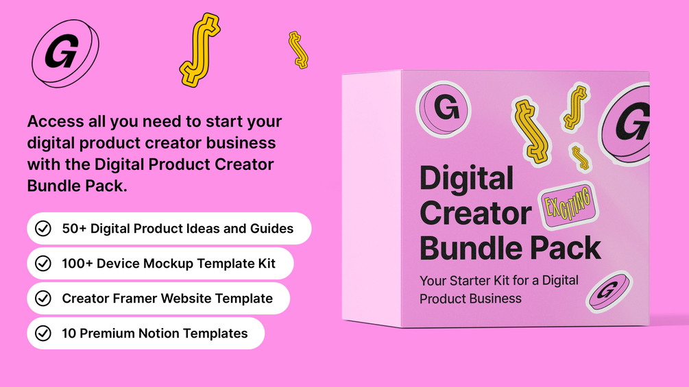 In the Digital Product Creator Bundle Pack, you can access everything you need to kickstart your own digital product creator business.