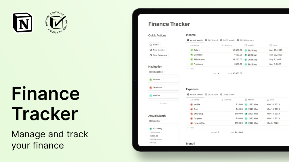 Stay on top of your financial game with this Finance Tracker Notion template. Designed to simplify your financial management, this template provides a comprehensive solution for tracking your incomes and expenses.