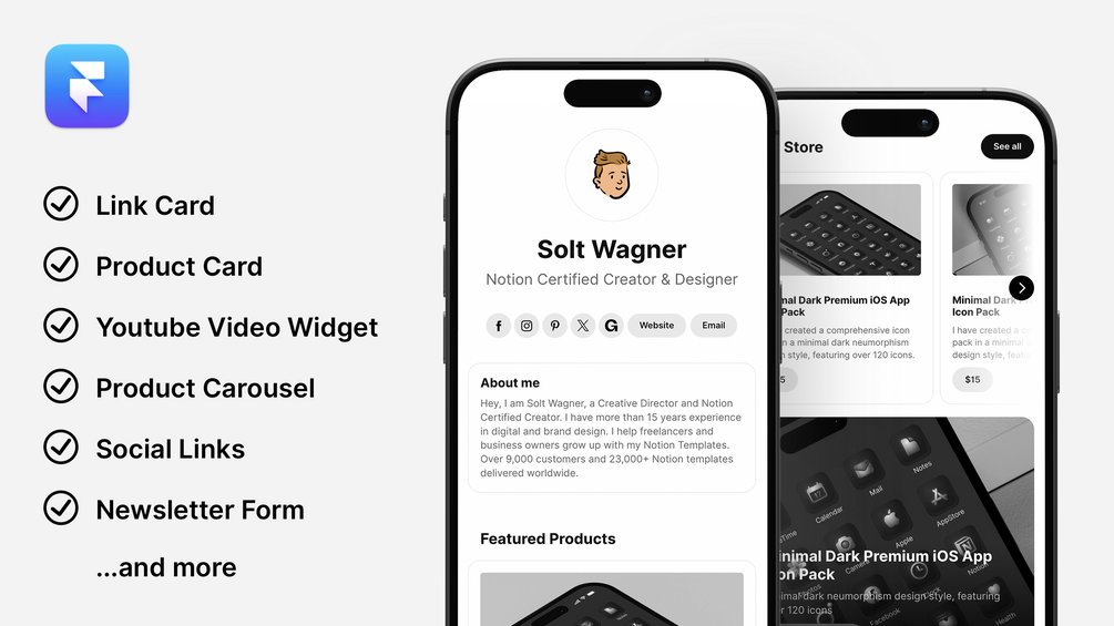 Minimal and Clean Link in Bio website template in Framer